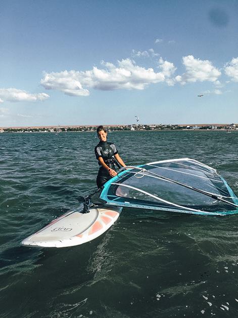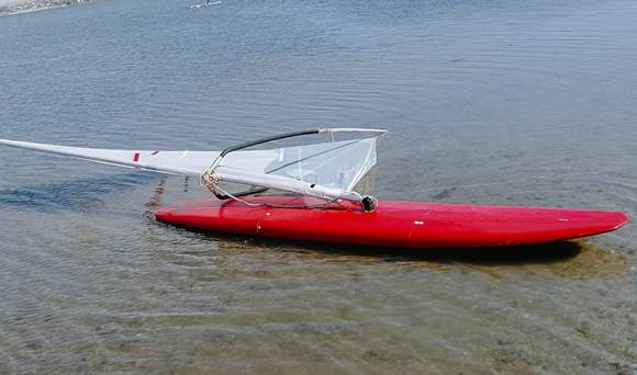 силой перекинуть парус, и упираешься в дно- тут же ноги уходят